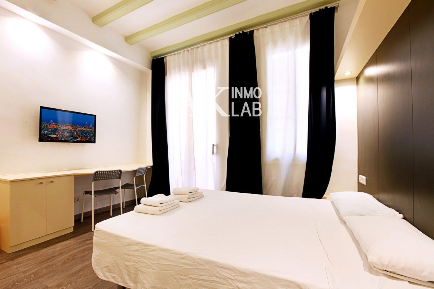 ALQUILER TEMPORAL DE 2 - 11 MESES .. Acogedor complejo residencial formado por habitaciones en suites completamente equipadas que constan de las siguientes características:. - Cama doble. - Baño completo en suite. - Zona escritorio. - Tv plasma. - Nevera individual. - Pequeño balcón. - Internet alta velocidad. - Aire acondicionado. - Finca video vigilancia 24h. - Terraza comunitaria + Zona de lavandería. - Cocina totalmente equipada compartida con el estudio de la misma planta . - No tiene ascensor..Condiciones del alquiler de temporada:..-Alquiler mensual= 720.00 €.-Fianza: 1.5 meses o 2 meses (según el tiempo de estancia según la ley de arrendamiento urbano).-Suministros mensual: 100.00 €.-Gastos de agencia: un mes de alquiler + IVA.-Limpieza Final: 100€ IVA INCLUIDO.-Elaboración de contrato: 100€ IVA INCLUIDO.-Internet: Gratis. .La finca dispone de un total de 8 estudios ubicados de la siguiente manera: en cada planta hay dos totalmente independientes con su baño y balcón propio. La cocina está completamente equipada y se sitúa en el centro de la planta, entre los dos estudios. El acceso a cada planta es exclusivo para los inquilinos de sus estudios correspondientes. La terraza y zona Lavandería está en la planta superior.. La Finca está en el barrio del Raval, Ciutat Vella, muy cerca de las Ramblas, Plaza Cataluña y Plaza Universidad. cerca de transporte, restaurantes, cafés, puntos históricos y bares. . .AKBCN es una empresa Atípica, que gestiona todo tipo de alquileres, alquilamos todo tipo de piso a todo tipo de clientes sin prejuicio ninguno, nos especializamos en pisos totalmente equipados y listos para entrar sin esfuerzo y de igual formar nos dedicamos a todo tipo de duración de contrato. Cuéntanos lo que buscas, lo tenemos todo.