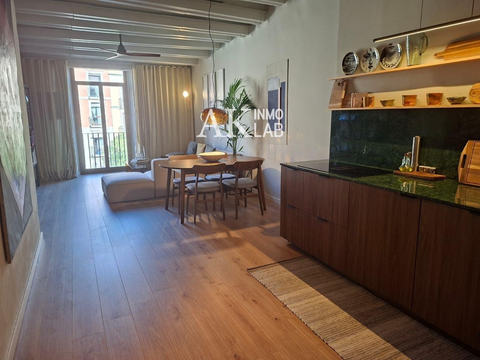 Excepcional piso de 86 m² según catastro, situado en el corazón de Sant Pere i Santa Caterina y reformado íntegramente con materiales de alta calidad...Ubicado en una tercera planta (segundo real y medio) de una bonita finca sin ascensor, disfruta de abundante luz natural y vistas despejadas a una agradable plaza arbolada...La vivienda dispone de:..2 dormitorios dobles en suite, ambos con baño completo...1 baño de cortesía adicional...Amplio salón-comedor de 40 m², muy luminoso, con una acogedora zona de estar...Cocina abierta totalmente equipada (horno, nevera, lavavajillas, lavadora…)...Suelo de parquet de roble y vigas vistas de madera y hierro que aportan carácter...Aire acondicionado y calefacción por conductos en toda la vivienda...La reforma destaca por su diseño contemporáneo de gran gusto, respetando elementos arquitectónicos originales y combinándolos con acabados de calidad, como la encimera de mármol en cocina...Terraza comunitaria...La ubicación es inmejorable: en pleno Sant Pere i Santa Caterina, muy bien comunicado por transporte público y a pocos pasos del emblemático Mercado de Santa Caterina. Una pieza única en una de las zonas más demandadas de Barcelona...Sant Pere, al igual que su vecino El Born, es un área moderna de calles antiguas llenas de tiendas de moda independiente y cafeterías artesanales. El municipio alberga el Palacio de la Música Catalana, un salón de conciertos de estilo art nouveau, y el mercado Santa Caterina, en el que se venden mariscos, jamones curados y quesos catalanes bajo un amplio techo cubierto de mosaicos. Durante la noche, el público joven suele concurrir a los bares locales para disfrutar de vinos y tapas gourmet.
