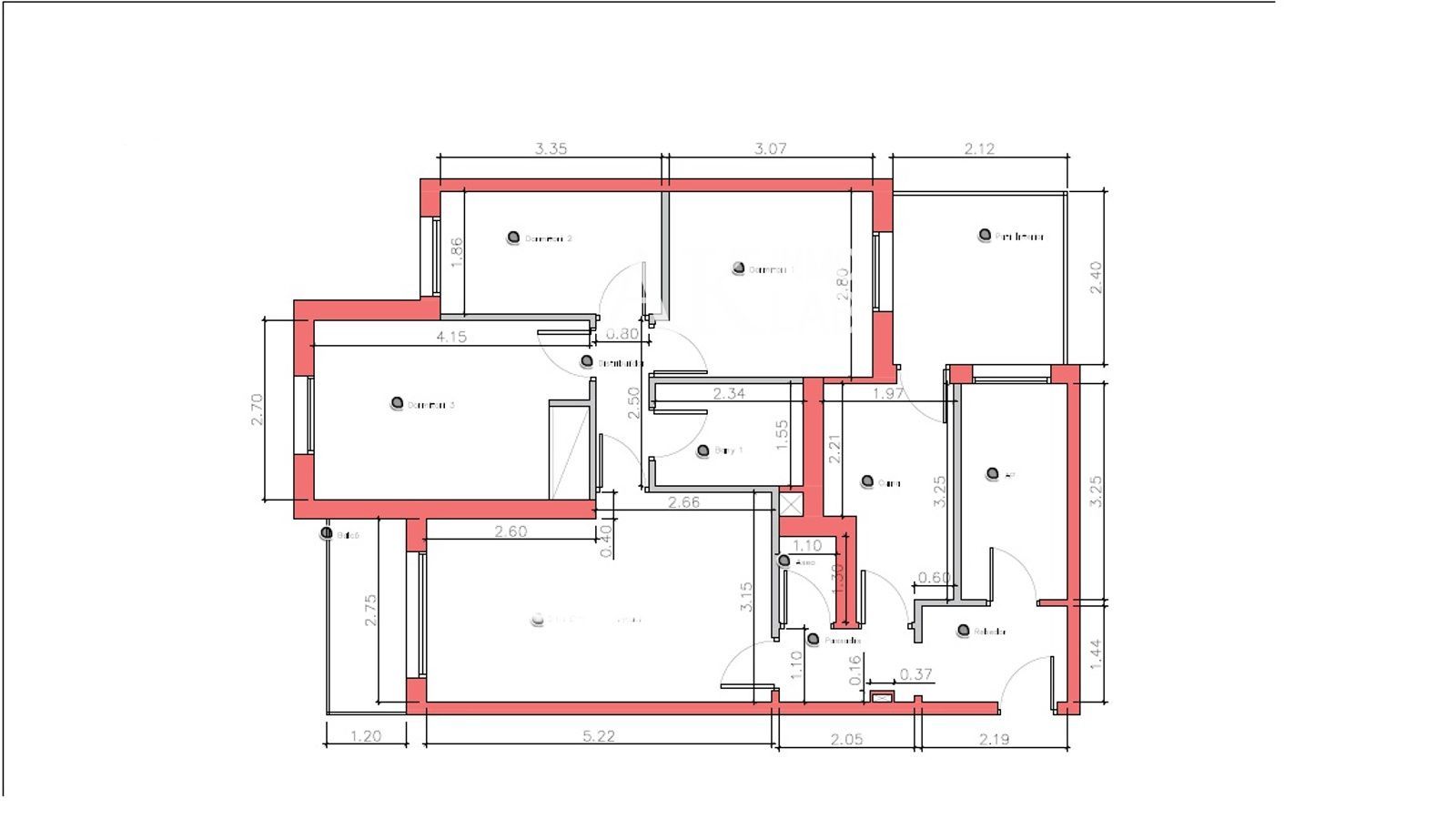 La vivienda dispone de 4 habitaciones (2 de ellas de tamaño mediano) y 2 baños completos. Su distribución permite múltiples opciones de reforma y una óptima reorganización de los espacios.